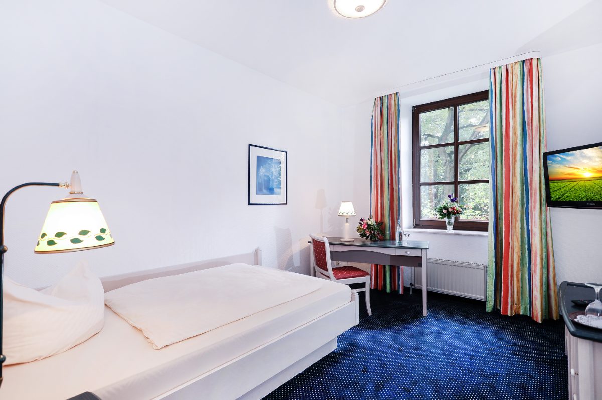 Unsere besonders großen Zimmer (25 bis 30 qm) im Haupthaus bieten höchsten Komfort, eine individuelle, liebevolle Einrichtung und absolute Ruhe. Jedes Zimmer verfügt über eine Dusche oder Badewanne/WC, einen Haarfön, einen Vergrößerungsspiegel, einen Zimmersafe, einen Farb-LCD-TV und eine erfrischende Flasche Wasser. Kostenloses WLAN ist in allen Zimmern verfügbar. Zudem bieten alle Zimmer einen wunderschönen Blick in den Park.